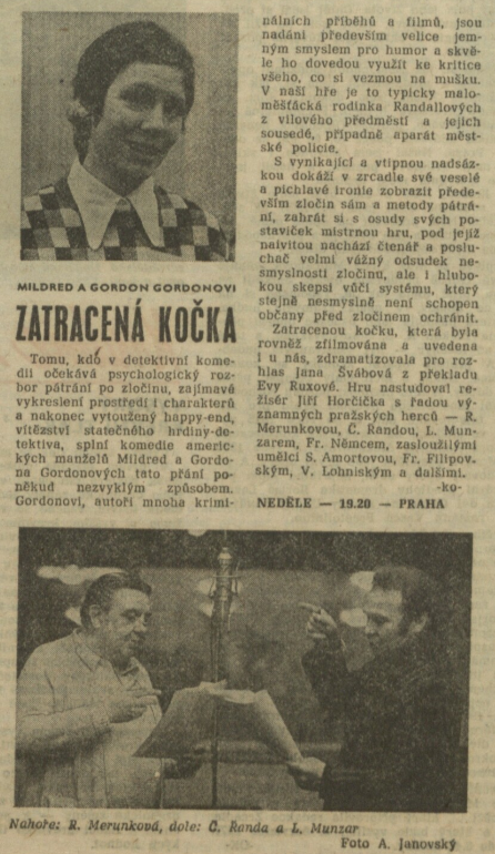 ko: Zatracená kočka. In Rozhlas 28/1977 (27. 6. 1977) s. 4 (článek).